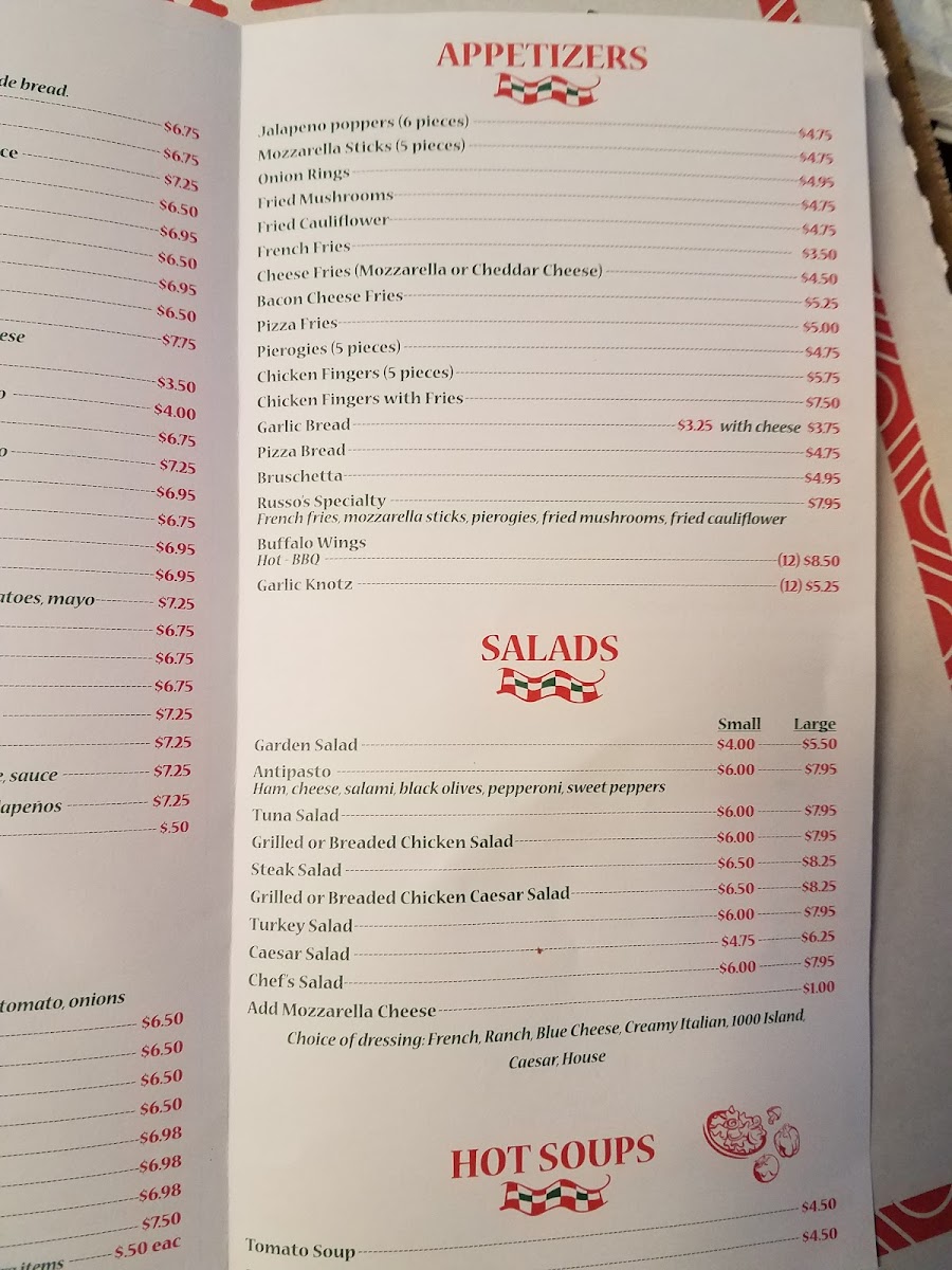 Welcome to Russo's Pizza Hamburg, where your palate takes a delightful journey through a menu brimming with flavor and variety. Located in the heart of Hamburg, PA, Russo's impresses with its specialty pizzas like the Bruschetta Pizza, a medley of tomatoes, garlic, basil, and mozzarella, and the hearty Meat Lovers Pizza, stacked with ham, bacon, sausage, and pepperoni. For those seeking something different, the Buffalo Chicken Pizza and Veggie Pizza are top contenders.